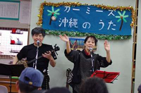 建物に入りきれないほどたくさんのお客さまでした。 好天に恵まれ鵜予想を上回るお客様においでいただき、本当にありがとうございました。 正午すぎにはうどんが売り切れてしまい、せっかくお越しくださったお客様に召し上がっていただくことができず本当に申し訳ありませんでした。 来年はこのようなことのないよう計画をたてたいと考えています。心よりお詫び申し上げます。 カーミーズさんありがとう! 沖縄のうたを中心に熱唱してくださったカーミーズのコンサートは素晴らしく、 特に復興支援のうた「花は咲く」は圧巻で、会場は熱気と感動に包まれました。 カーミーズさんありがとう!! |