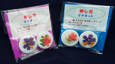 小さな可愛い花を 透明シールで 貼りつけてあります。 ●直径3.0cmのマグネット 2個入り 250円 |
