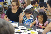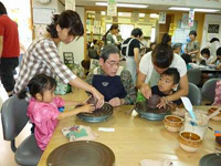 7月7日(日)第二みんなの家地域交流会「来て!見て!作って!」が34度を超える猛暑のなか開催されました。 陶芸体験や押し花体験では、小さなお子さんから年配の方まで幅広いお客様が所員さんの丁寧なアドバイスにより素晴らしい作品を作られました。 猛暑の中700本の焼き鳥も完売し、あずきのかき氷やアイスコーヒーなども大盛況でした。 実行委員会を4月から立ち上げ実行委員会を中心に準備を進めてきて迎えた当日は、来場者数210名、総売り上げ\263,955円でした。 来場してくださったお客様、ボランティアの皆様のおかげで無事、地域交流会を成功することができました。 本当にありがとうございました。 |