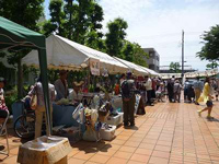 5月19日(日)市役所中庭で「第20回みんなの家まつり作品市」が開催されました。 前日までお天気が危ぶまれましたが、当日は多少風があったものの、とてもいい天気に恵まれ、準備をするスタッフ一同胸をなでおろしました。 「作品市」の名前に負けないように、この日のために仕上げた陶器、手芸品、さをり織り、押し花などの作品がたくさん並べられ、訪れたお客様の目をひいていました。 昨年から「商品券」が当たるようになったくじ引きコーナーでは、当たるたびにカランカランとカネが鳴り、バザーや物品販売のお店を見ていたお客さまも、商品券が当たるとわかると、「先にくじひいてこようか」と、本部テントに向かう姿も見られました。 恒例となった体験コーナーでは、陶器の絵付けや、さをり織りのコースターづくり、ちぎり絵体験など、ふだんなかなかできない体験に、大人も子どもも一生懸命取り組んでいました。 また焼きとりの売り場は、長蛇の列で、1000本準備した焼きとりが1時には売り切れました。 当日は地元ケーブルテレビの「マイテレビ」のカメラが入り、実行委員長へのインタビュー、利用者さんが一生懸命育てて販売した植木コーナーの様子や、作品や体験コーナーの様子が収録されました。 お昼頃から強まってきた風を受けて、テントがあおられ、ヒヤッとする場面もありましたが、無事に終わることができました。 当日お越しいただきましたお客様、また貴重なお休みにボランティアしてくださったみなさま、本当にありがとうございました。 |