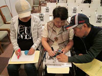 すっかり手慣れた様子のシール貼り |