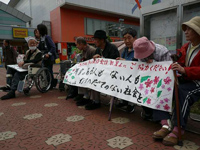 4月30日、東大和市駅にて、第一みんなの家の通所者と職員で国会請願の署名活動をしました。 横断幕も手作りし、「障害のある人もない人も わけへだてのない社会を」と呼びかけました。 風が強かったため、短時間の活動となりましたが、多くの方が足をとめ、署名をしてくださいました。 ご協力くださいました皆様、ありがとうございます。 |