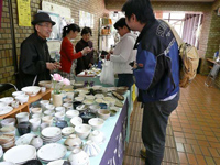 通所のみなさんが毎日楽しみにしているのがお昼ごはん。 まかないさんが丹精込めて作ったおいしいごはんを、温かいうちにいただきます。 そして、そのおいしいごはんをさらにおいしく盛り立てているのが、みんなで作ったお皿や小鉢です。 みんなの家の作業のひとつに陶芸がありますが、その技術を生かして自分たちの食器もてづくりしているのです。 そして、食事のあとのお茶も手作りのカップや湯飲みで。 これらの陶器は販売もしています。 各作業所の店先や、年に数回販売する市役所ロビー展ほか各種行事などでお買い求めいただけます。また注文もお受けしていますので、お近くの作業所まで是非ご相談ください。 |