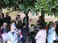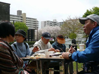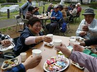 4月11日(木)、東大和南公園にて、毎年恒例の合同お花見交流会を開催しました 。 実行委員さんが中心となり、お花見が盛り上がるよう、ゲームや歌の準備をしてきましたが、突然、雨が降り出し、木の下で雨宿りをしながらジャンケンゲームすることに・・・。 用意してきた段取りとは違ったけれど、おいしいお弁当や温かい豚汁、甘酒などで、花より団子のお花見を楽しみました。 |